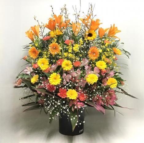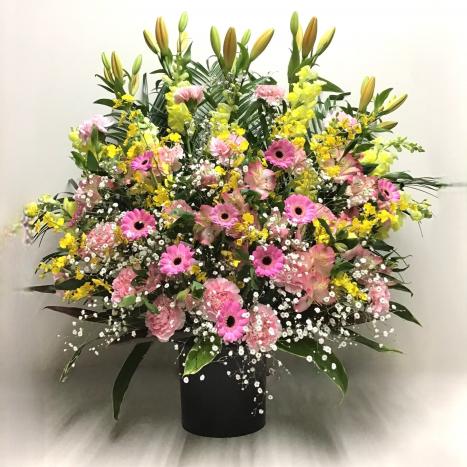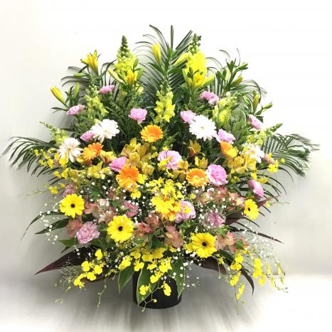 スタンド花とは、専用スタンド台に花器をのせてお花をアレンジしてつくる大型のフラワーアレンジメントです。