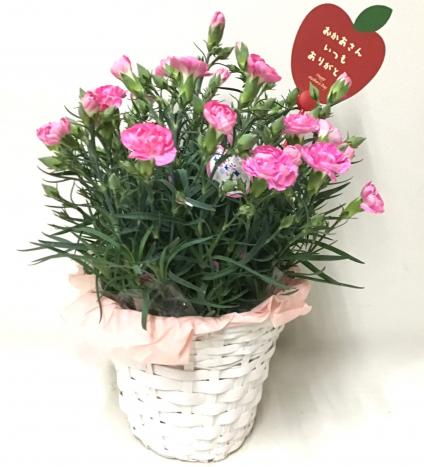 赤系のカーネーション鉢です