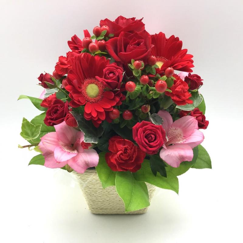 赤系のお花をメインでお作りします