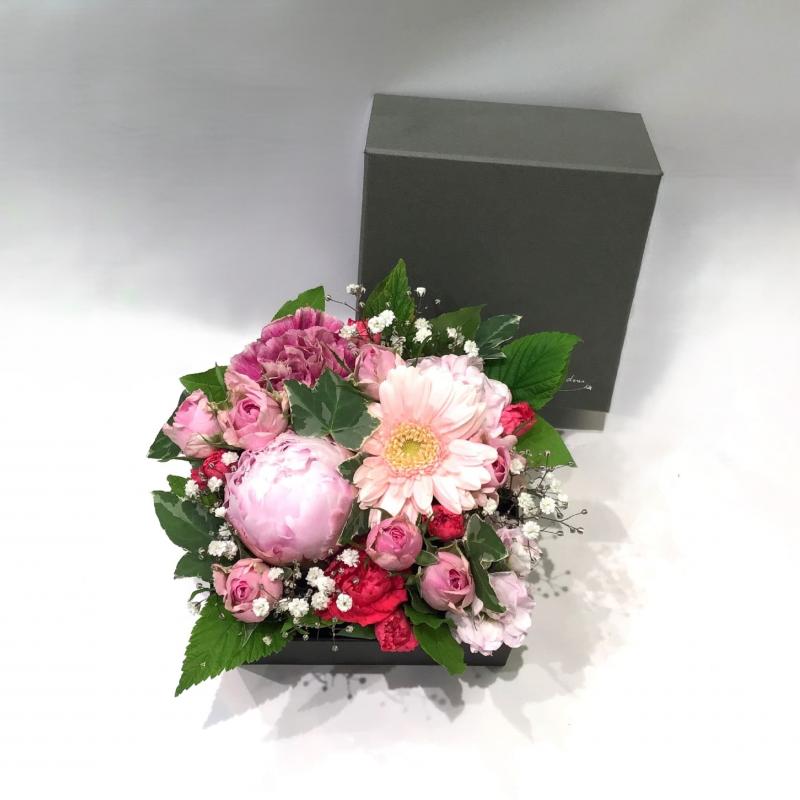 ピンク系のお花をメインでお作りします お花の種類はおまかせとなります